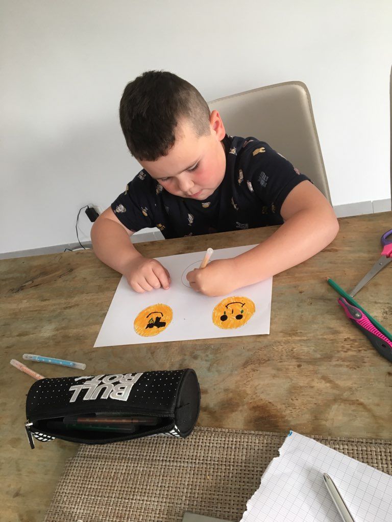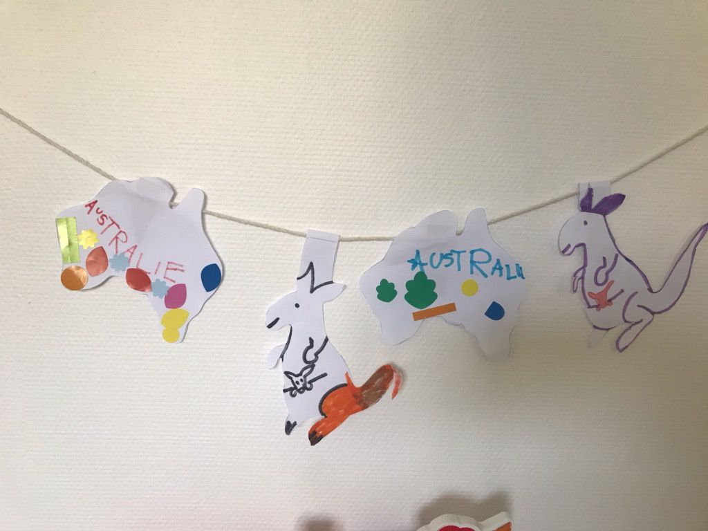 Yuna a tracé le contour du continent australien, découpé le motif puis elle l'a découpé .Timéo, Enzo et Tylian travaillent....et réalisé une guirlande.