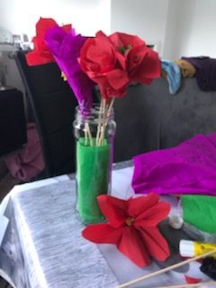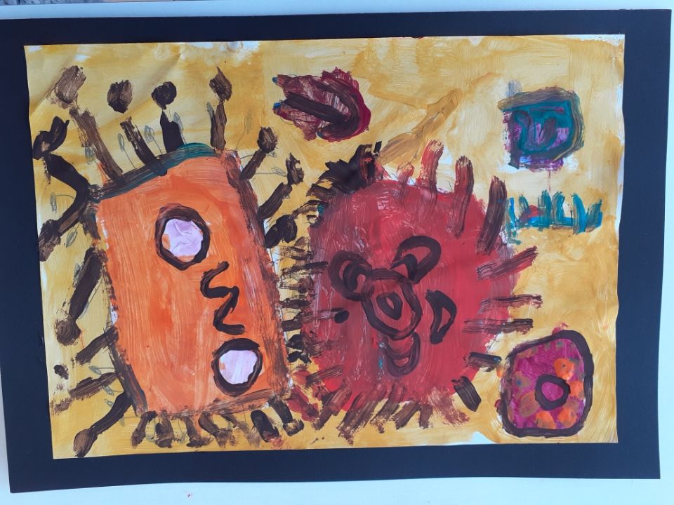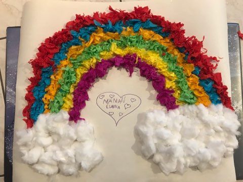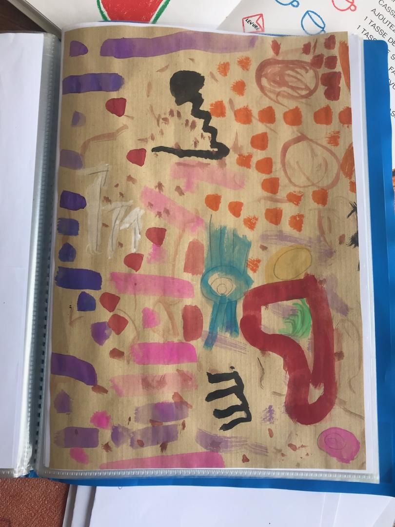 Basile a réalisé un joli tableau, Mehdy (le petit lion )a confectionné des cerises en papier et Isée a réalisé une peinture de style aborigène et dessiné des fées à l'intérieur d'un cœur.