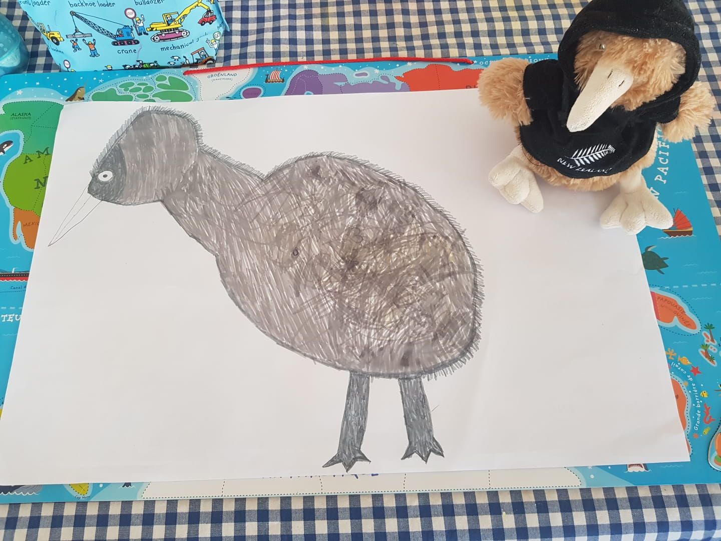 Lou a dessiné un kiwi (oiseau néo-zélandais). Bravo ! Il a été rejoint par les dessins de Basile, Margaux, Amaël, Lucas et Timéo.