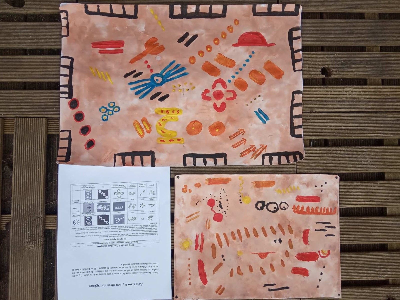 Lou , Isée , Margaux et Yuna ont peint leur "rêve" à la manière des aborigènes d'Australie.