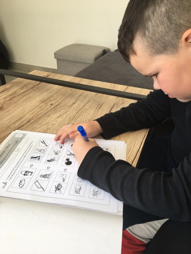 Amaël a décrit son rêve : "Je nageais dans l'eau, un aigle m'a rattrapé. Tout d'un coup, un arc-en-ciel apparaît dans le ciel et la pluie fait plop, plop , plop.J'ai aussi vu des traces de pas sur la plage, d'hommes et de kangourous. Les hommes devaient chasser le kangourou!